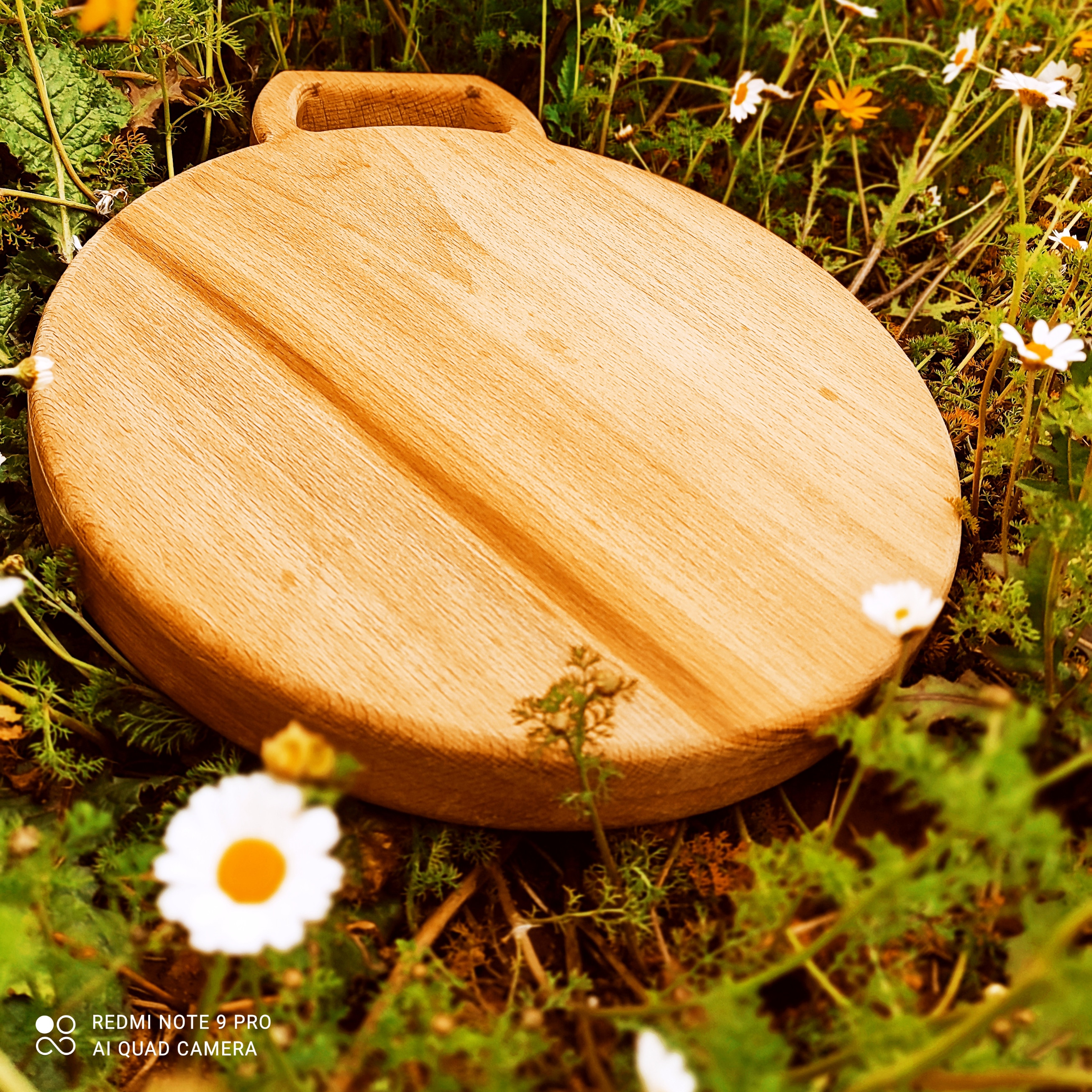 27×27 cm çapındadır.Fırınlanmış kayın ağacından üretilmiştir.AHŞAP KESME TAHTASI, kullanımı yaygın olan bir mutfak eşyasıdır. Doğal ahşap malzemeden üretilen bu kesme tahtası, hem sağlıklı hem de şık bir seçenektir. Son zamanlarda yeniden popülerliğini kazanan bu ürün, mutfaklarımıza doğallığı ve estetiği bir arada sunmaktadır.
