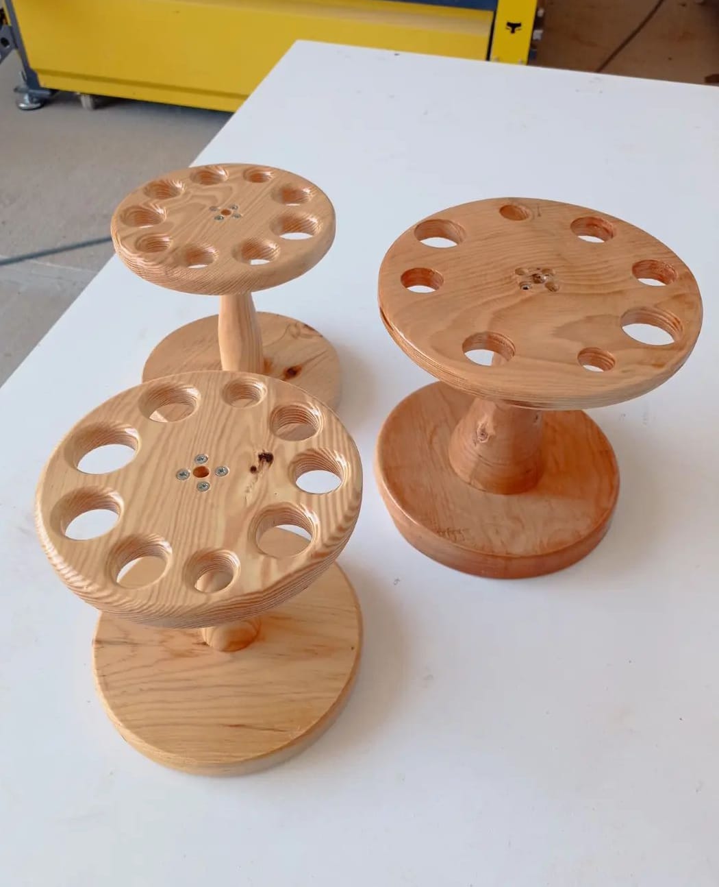 Bu pratik stant, ahşap bir kare taban üzerine oturtulmuştur ve isteğinize göre farklı boyutlarda tasarlanabilir. Yüksekliği değiştirilebilir ve istediğinizde masaüstünde veya banyo dolabında taşınabilir. Ayrıca, ahşap malzemenin dayanıklılığı ve suya dayanıklılığı sayesinde, banyonuzda veya ıslak bir ortamda kullanılabilir.