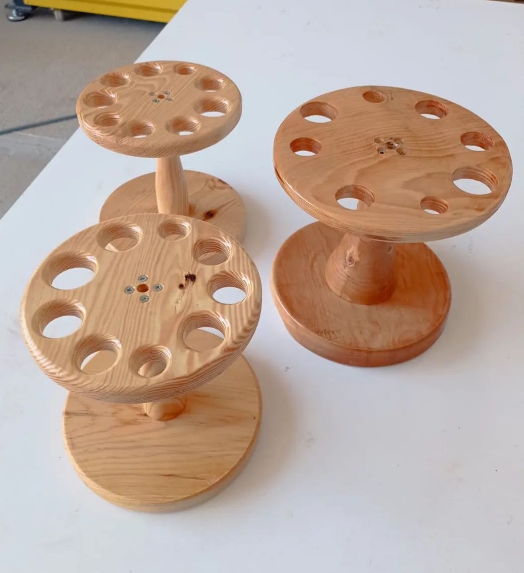 Ahşap Tarak Stantı, saç tarağı, tarak ve diğer saç aksesuarlarınızı organize etmek ve saklamak için pratik bir çözümdür. Bu el yapımı stant, kaliteli ve dayanıklı ahşap malzemeden üretilmiştir ve uzun ömürlü kullanım için tasarlanmıştır. Her bir stant, doğal ahşap rengiyle rustik bir görünüm sunar ve her türlü banyo veya makyaj masası dekoruna uyum sağlar.