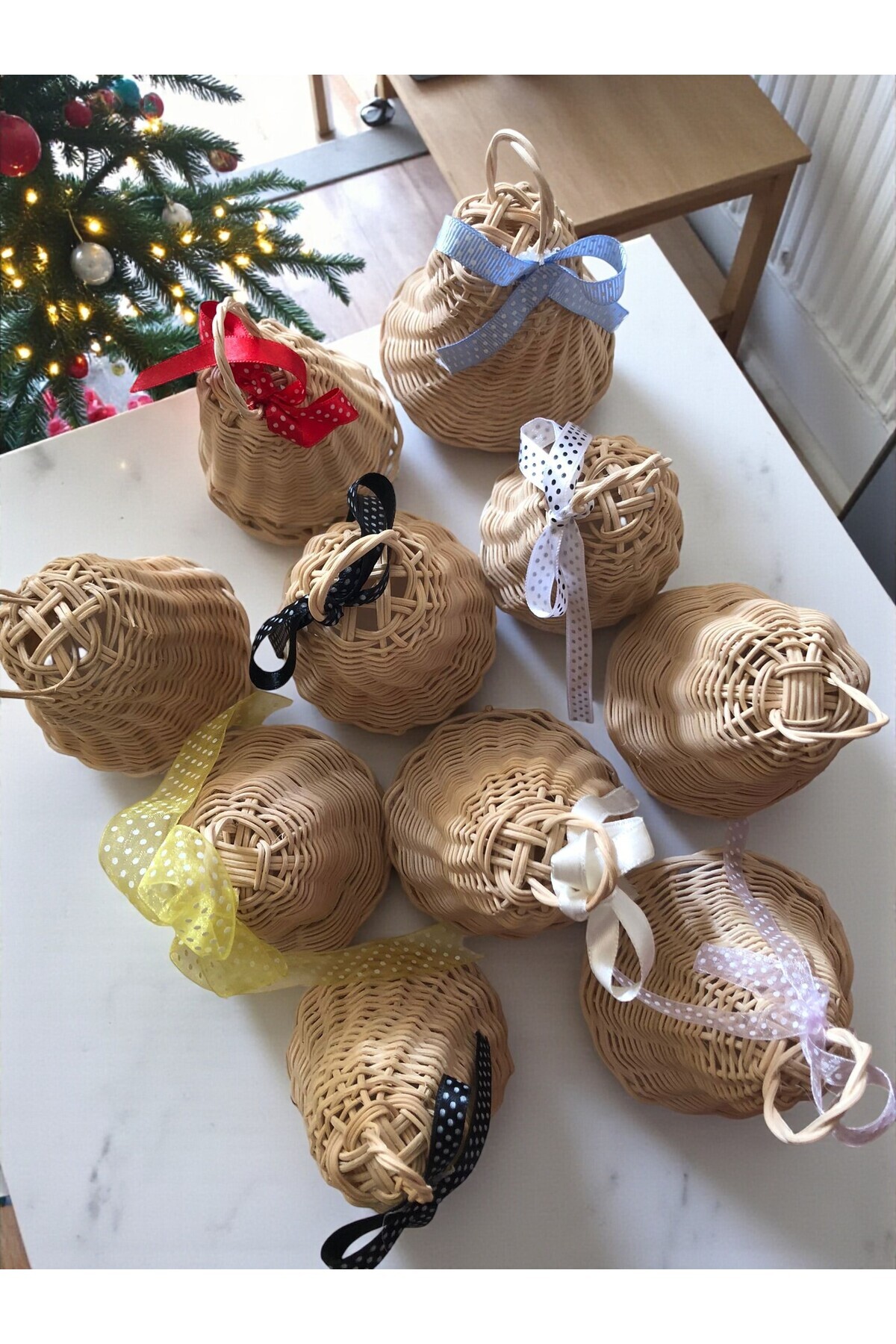 - Bambu malzemesi sayesinde hafif ve dayanıklı olan bu süsler, ağacınızda kolayca yerini bulur ve düşme riskini azaltır.