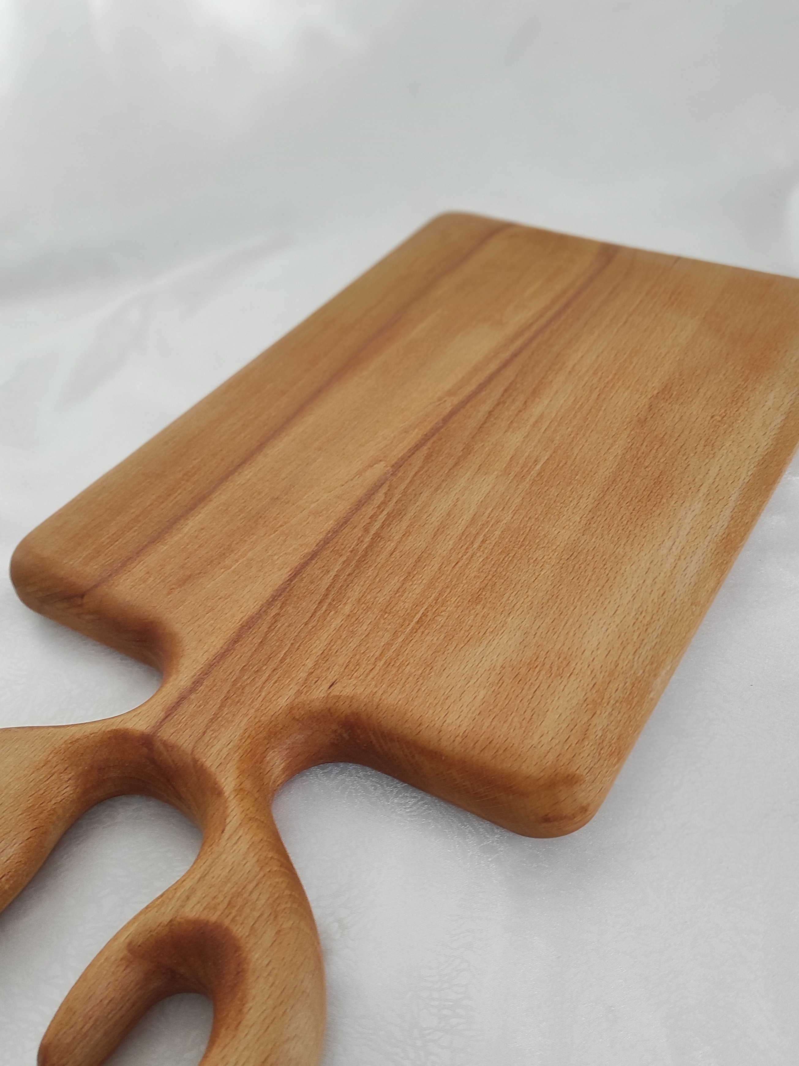 Ürünümüz fırınlanmış kayın ağacından yapılmış olup üç aşama zımparadan geçirilmiştir.Boy 47 cm ,en 22 cm , kalınlığı 2,7 cm dir.
