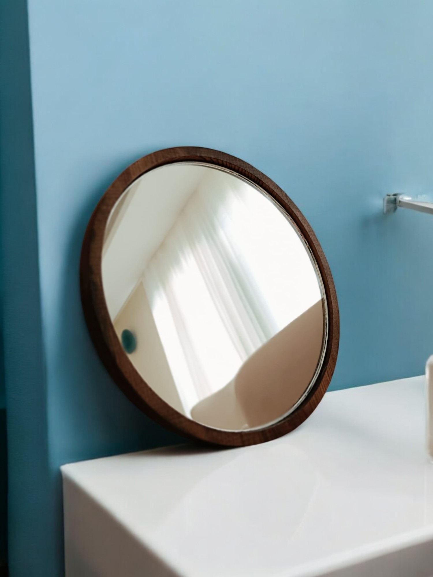 Ev dekorasyonunda zarafet ve fonksiyonelliği bir araya getiren Yuvarlak Ahşap Kaplamalı Ayna, her mekanın atmosferini değiştirmek için ideal bir seçenektir. Ahşap çerçevesi ile doğal bir görünüm sunarken, yuvarlak tasarımı sayesinde modern ve şık bir dokunuş katmaktadır. Özellikle sade ve minimalist bir tarzı benimseyen kişiler için harika bir tercih olacaktır.
